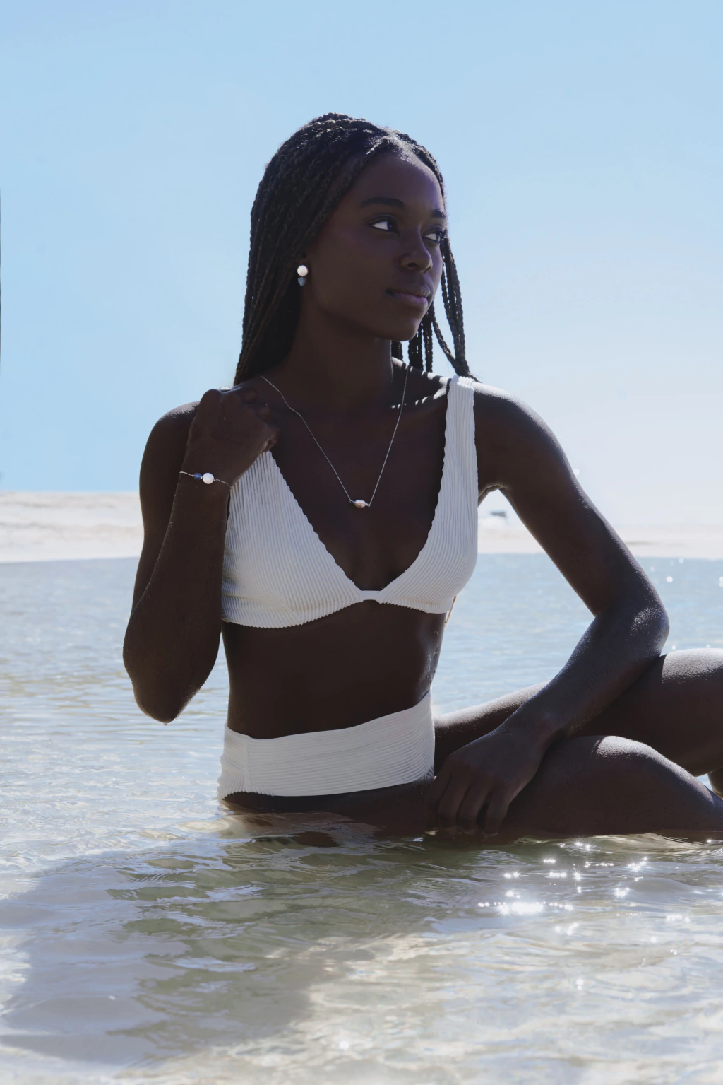 Elementos naturais: água marinha e pérola.